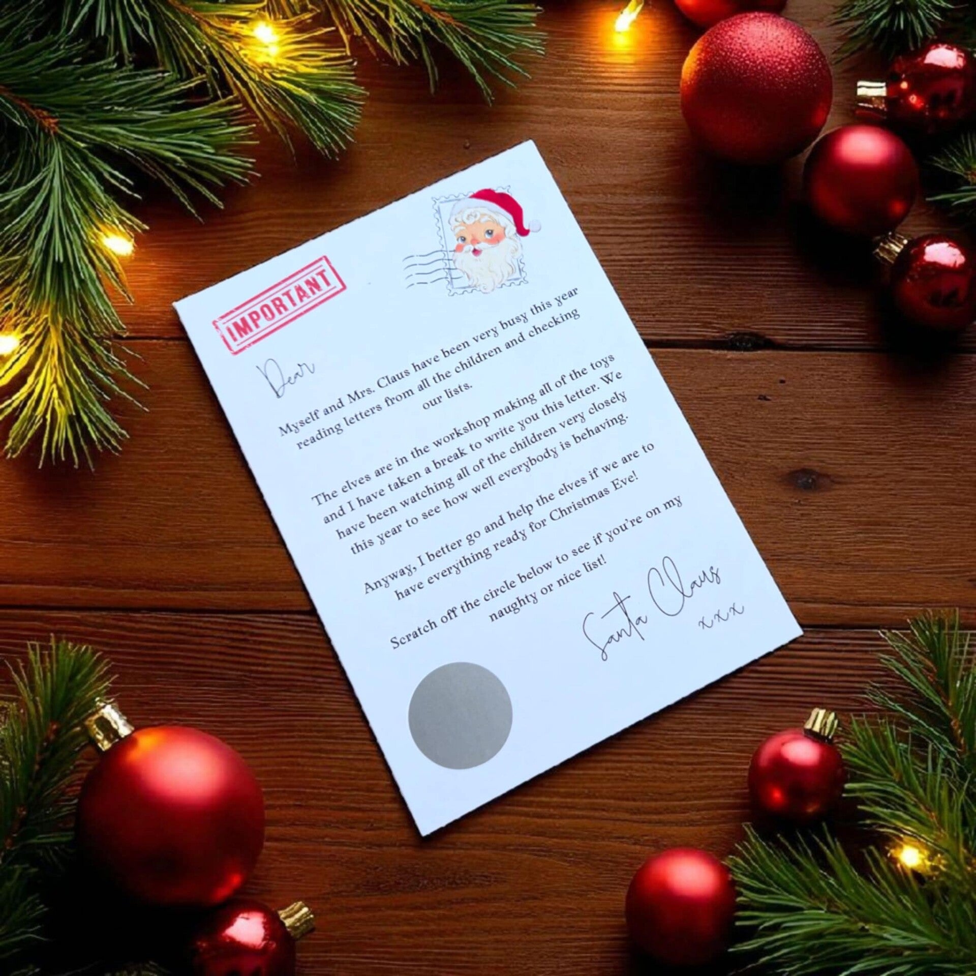 Get into the holiday spirit with the Santa Scratch Card! Simply scratch off the card to reveal if you've made it onto the coveted Nice List. Here's the best part – all cards reveal 'NICE', ensuring everyone gets that magical moment of joy this Christmas. Perfect as a fun stocking filler, or a sweet surprise for loved ones. Order yours today and spread some festive cheer!