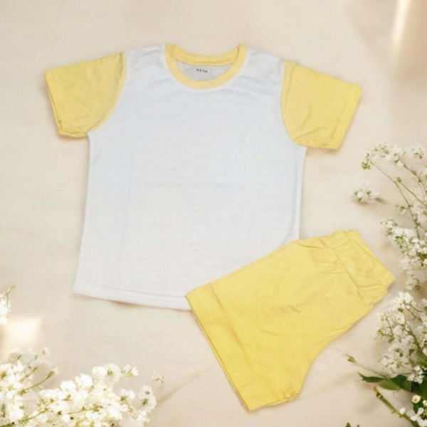 Sublimation Kids' Shorts Pyjamas - 100% Cotton Sleeves and Legs. Features sublimation-ready front and back panels, available in a variety of vibrant colors. Perfect for sublimation, DTF, and vinyl printing.