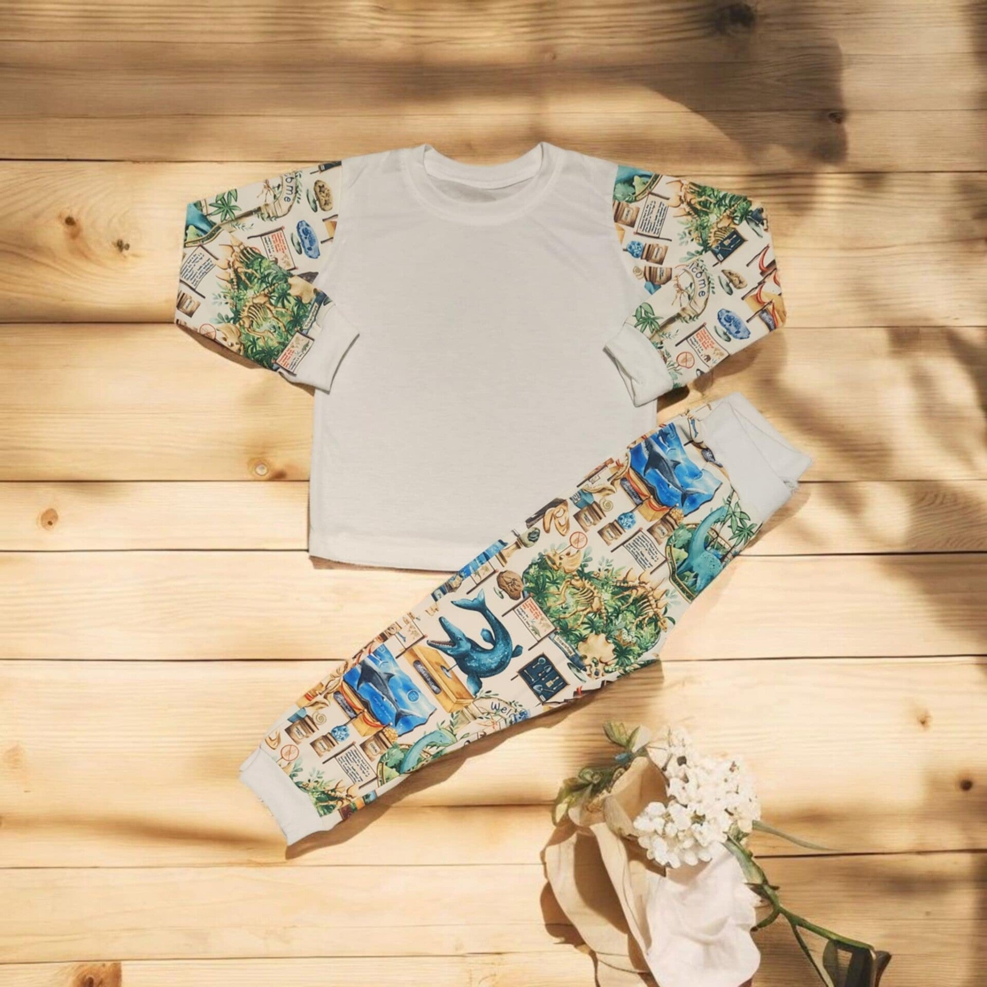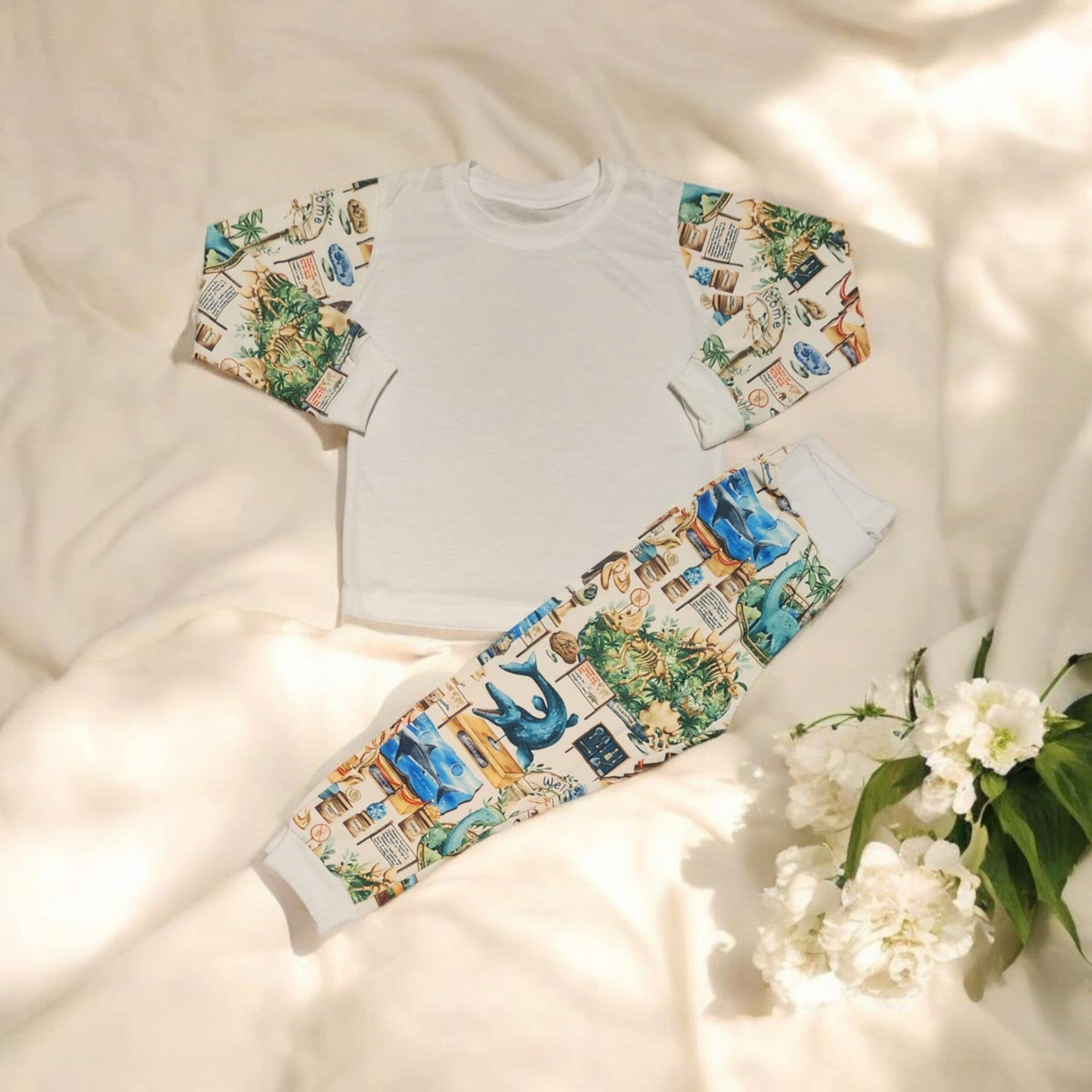 Sublimation Kids' Diosaur Museum Long Pyjamas - Features sublimation-ready front and back panels, available in a variety of vibrant colors. Perfect for sublimation, DTF, and vinyl printing.