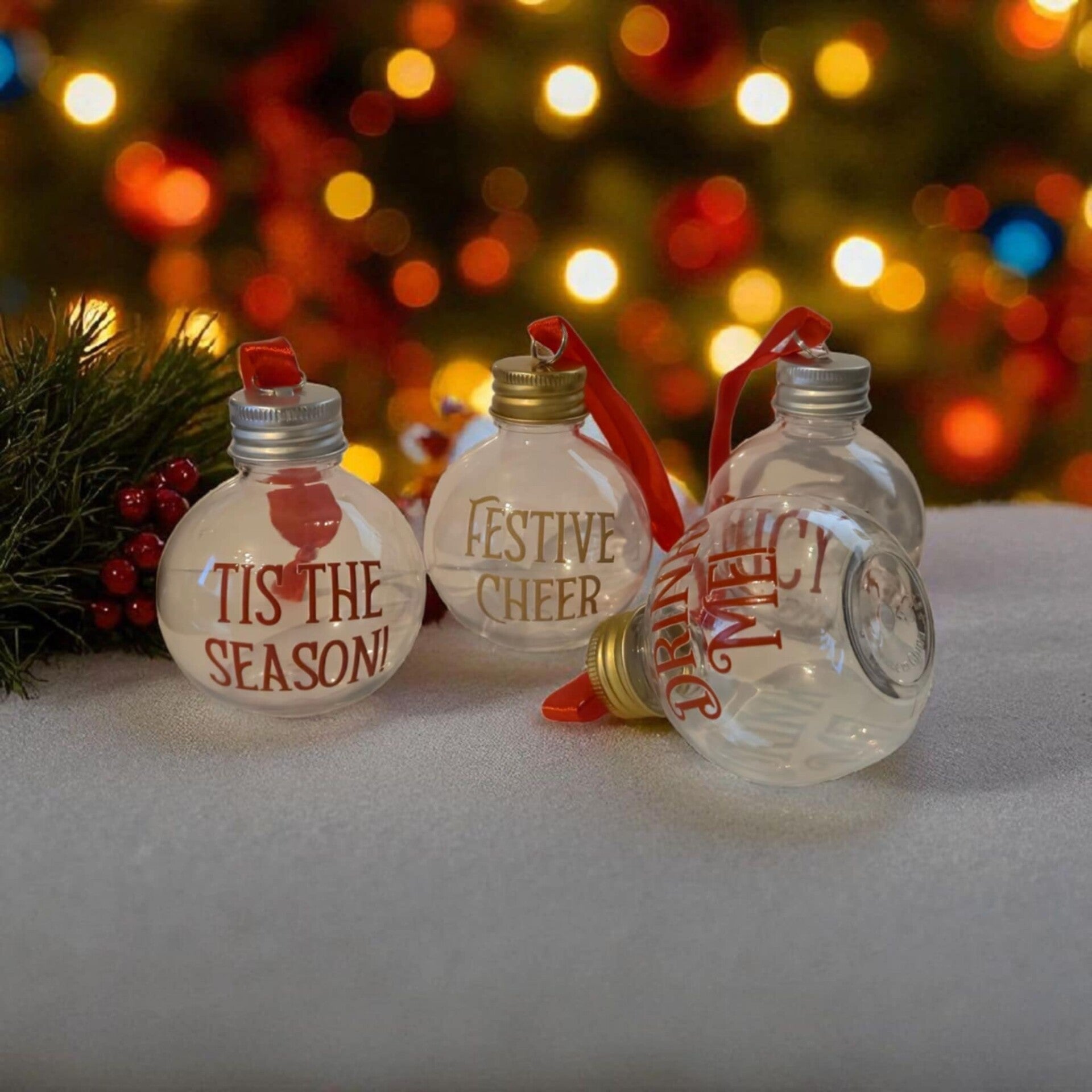 Make your Christmas extra special with our fillable Christmas baubles, perfect for adding a personalised touch to your festive décor. These baubles can be customised with vinyl or UVDTF printing, making them a thoughtful and unique addition to your tree. Fill them with your favourite Christmas drink, whether it’s mulled wine, eggnog, or even a creative cocktail! A delightful way to surprise your loved ones or create a memorable keepsake, these baubles are the perfect blend of festive fun and personal charm. Get yours today and add a touch of magic to your Christmas celebrations!