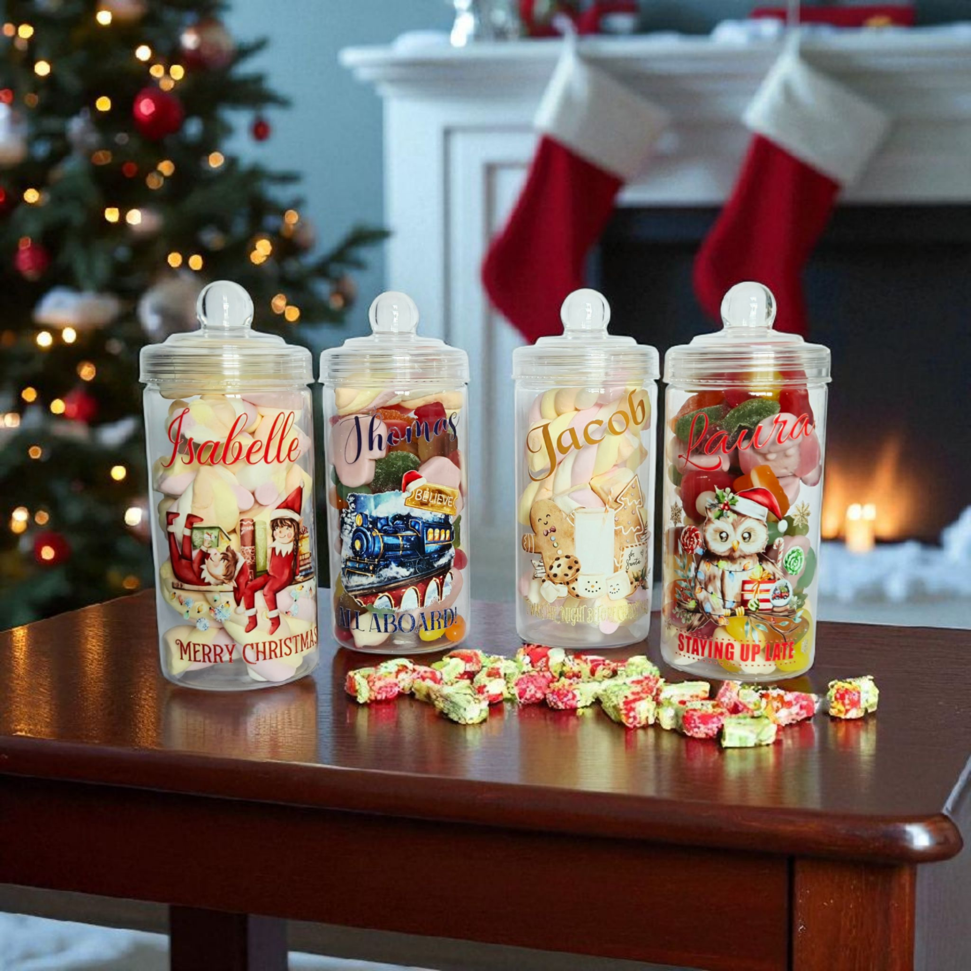 Our Festive Treats Sweet Tub, with a 500ml capacity, is the perfect solution for storing and gifting your favourite treats like sweets, marshmallows, chocolates, and more. Designed to match our festive themes, these tubs bring a touch of joy and charm to any occasion. Made from high-quality, food-grade PET plastic, they ensure your treats stay fresh and safe. Personalise your tub with names or messages using premium vinyl or UVDTF printing for that extra special touch. Perfect for gifting or for adding a decorative, functional piece to your celebrations!
