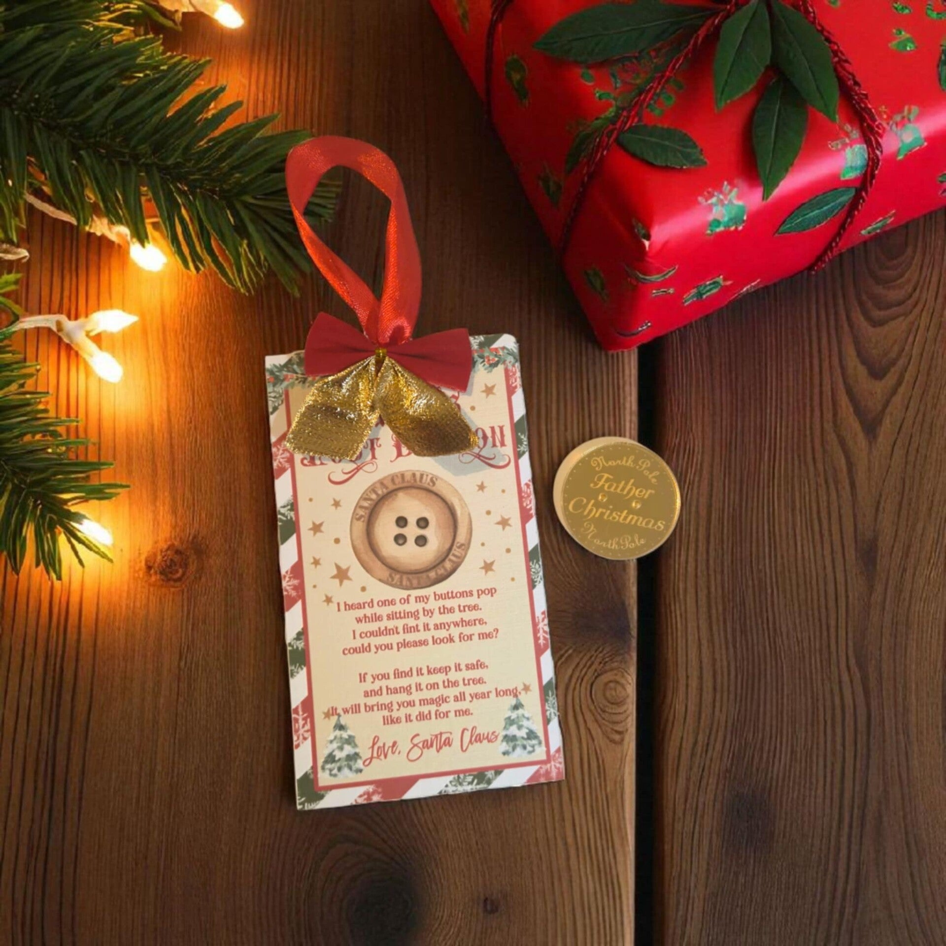 Bring an extra touch of Christmas magic into your home with Santa's Lost Button and Note – a delightful treasure for your child to discover this Christmas season. Imagine their excitement as they stumble upon a shiny button that has "fallen" from Santa's coat during his visit. Along with the button, they'll find a carefully written note from Santa himself, explaining how he lost it while delivering presents. This enchanting keepsake sparks their imagination, keeps the festive spirit alive, and creates a heartwarming moment your family will cherish forever. Perfect for adding a little extra wonder to Christmas morning or your family traditions, Santa's Lost Button with a Note is the perfect way to make the season even more magical for your little one!