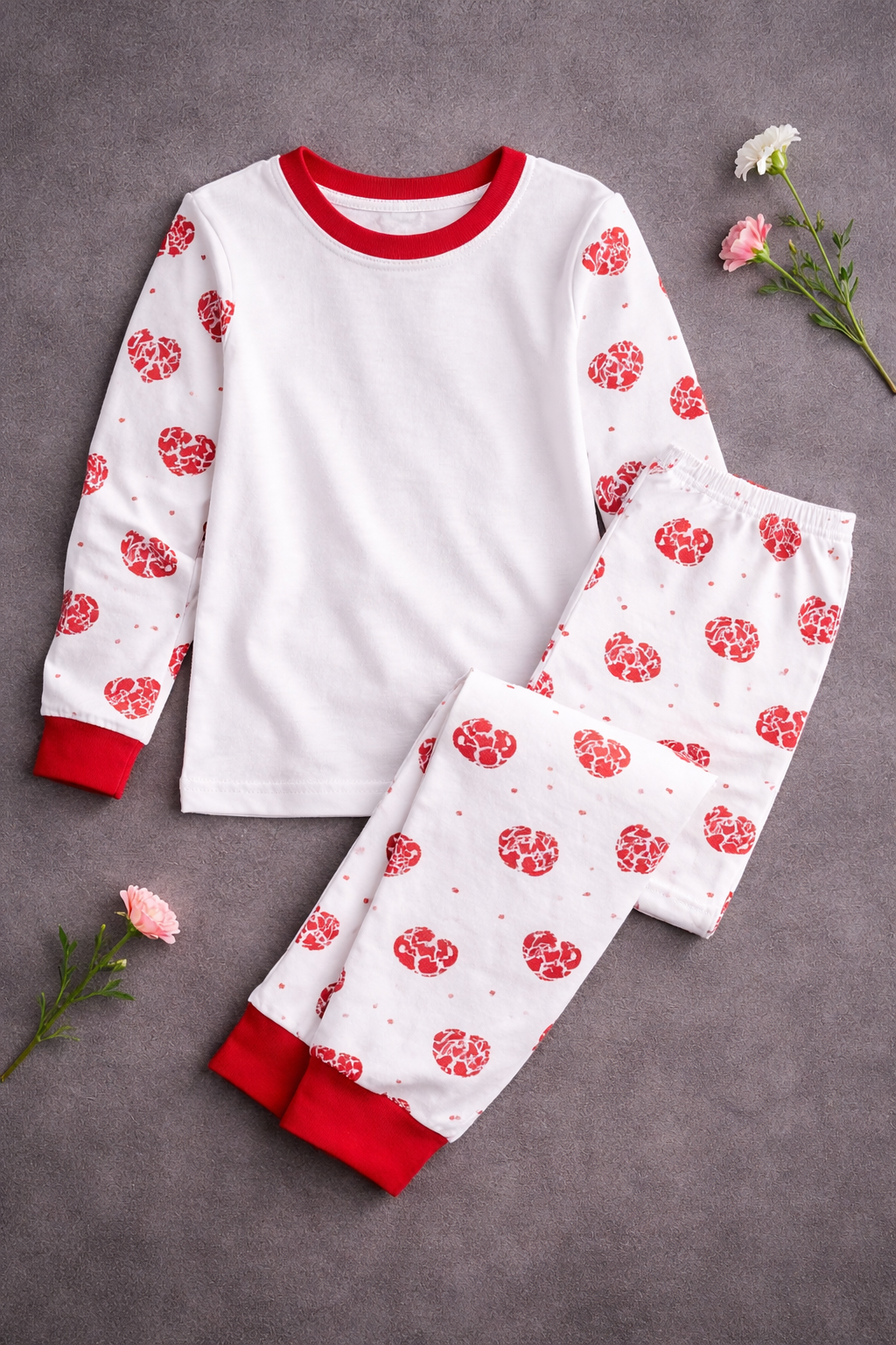-Kids Red Heart Pyjamas -LONG